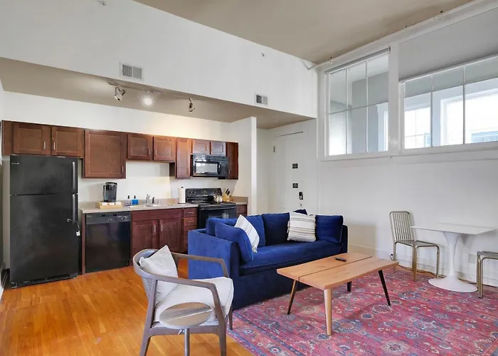 Stunning Nulu 1Br Cozysuites 06 is placed in Downtown Louisville district, within a 5-minute walk of the café Toast On Market. This venue is steps away from the home stadium "Louisville Slugger Field" and it also provides a microwave, a refrigerator, and kitchenware in a fully equipped kitchen.